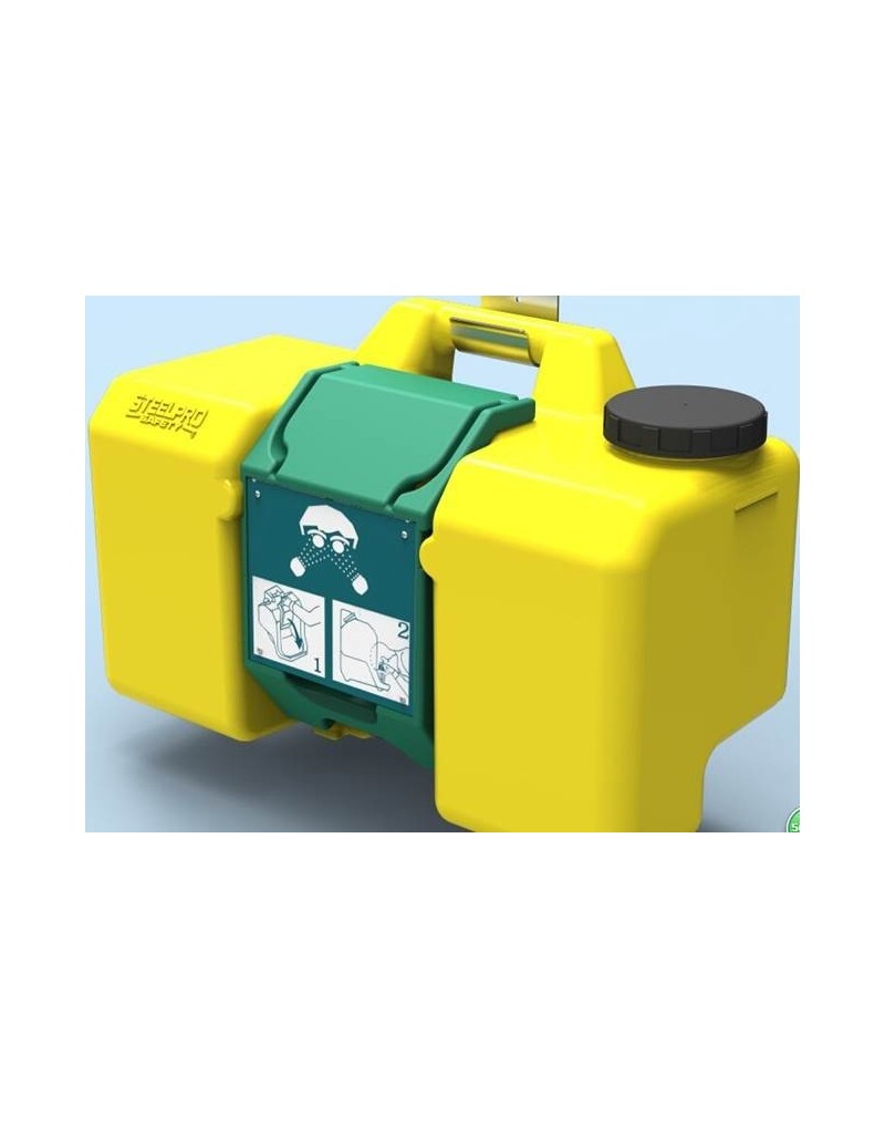 Lavaojos portátil autónomo de 34 litros de capacidad en tanque de Polietileno de Alta Densidad (HDPE).