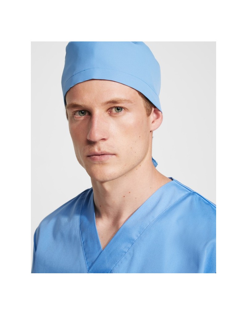 Gorro sanitario unisex con cintas para ajuste posterior.
