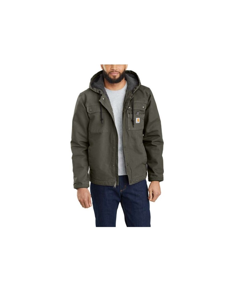 Chaqueta Carhartt Relaxed Fit Washed Duck Sherpa-Lined Utility Jacket: robusta, cálida y funcional. Perfecta para trabajos exigentes y días fríos.