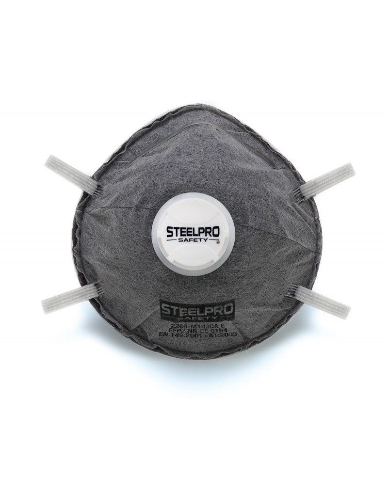 Mascarilla desechable FFP2 con válvula de exhalación y carbón activo. Mascarilla de polipropileno con carbón activo factor de protección FFP2 (12XTLV) para partículas, y aerosoles sólidos y líquidos.El carbón activo permite reducir ciertos tipos de gases y vapores en baja concentración (gases orgánicos de descomposición, olores molestos...) .Válvula de exhalación extra-grande (que permite expulsar el aire del interior de la mascarilla en mayor medida, reduciendo la acumulación de aire caliente y humedad del interior de la mascarilla. Recomendable para trabajos fatigosos).Test de Dolomita (prueba resistencia a la respiración/fatiga).Clip nasal de aluminio ajustable con almohadilla interior.Doble goma de ajuste.Caja dispensadora de 20 unidades (400 uds. caja grande). Usos y empleo: en actividades con partículas baja toxicidad en trabajos con madera, agricultura, minería, construcción, fundición, humos de soldadura, recogida de residuos, fabricación con metal, productos químicos y aditivos en polvo, laboratorios, alimentación, cerámica, astilleros...