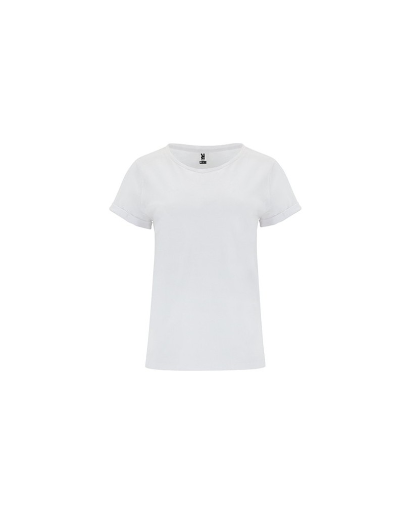 Camiseta de manga corta para mujer. Cuello redondo en el mismo tejido y cubrecosturas interior a tono. Dobladillo en mangas reforzado en cuatro puntos.