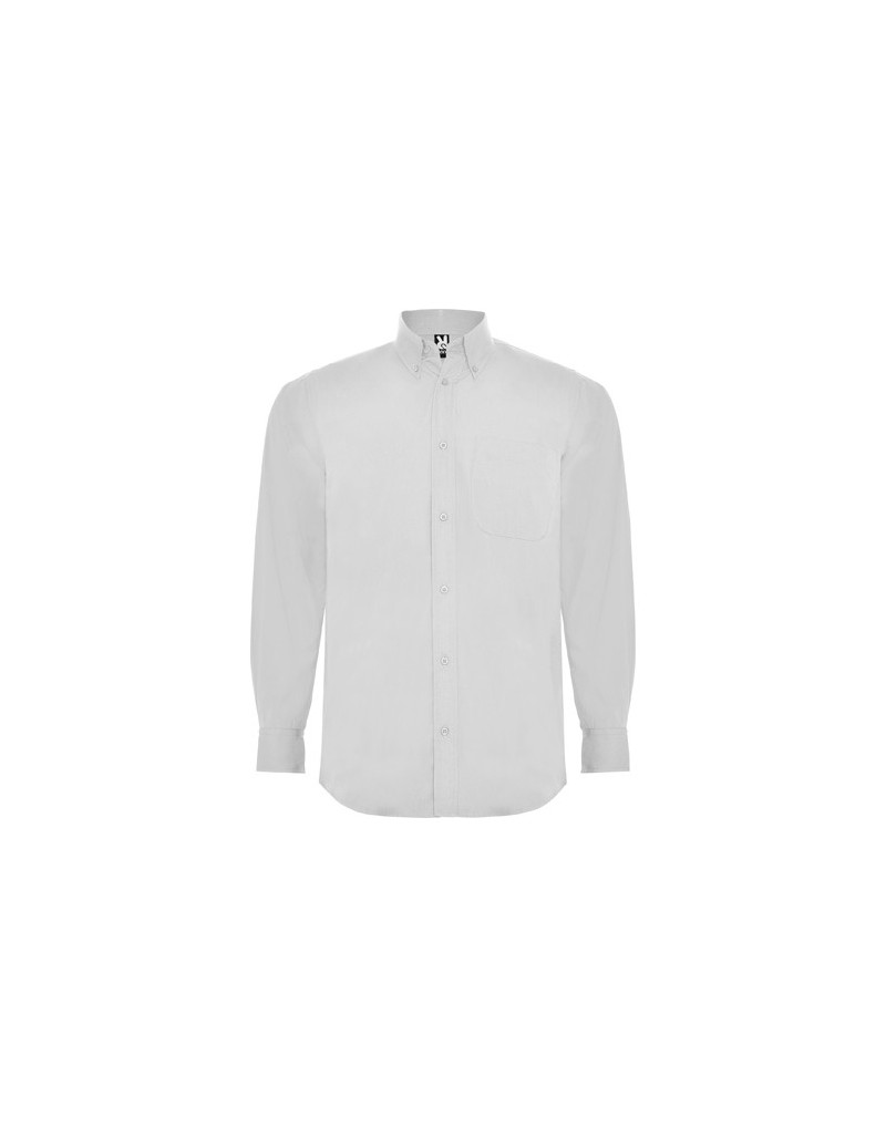 Camisa de manga larga, cuello clásico almidonado de 1 botón y bolsillo frontal izquierdo.
