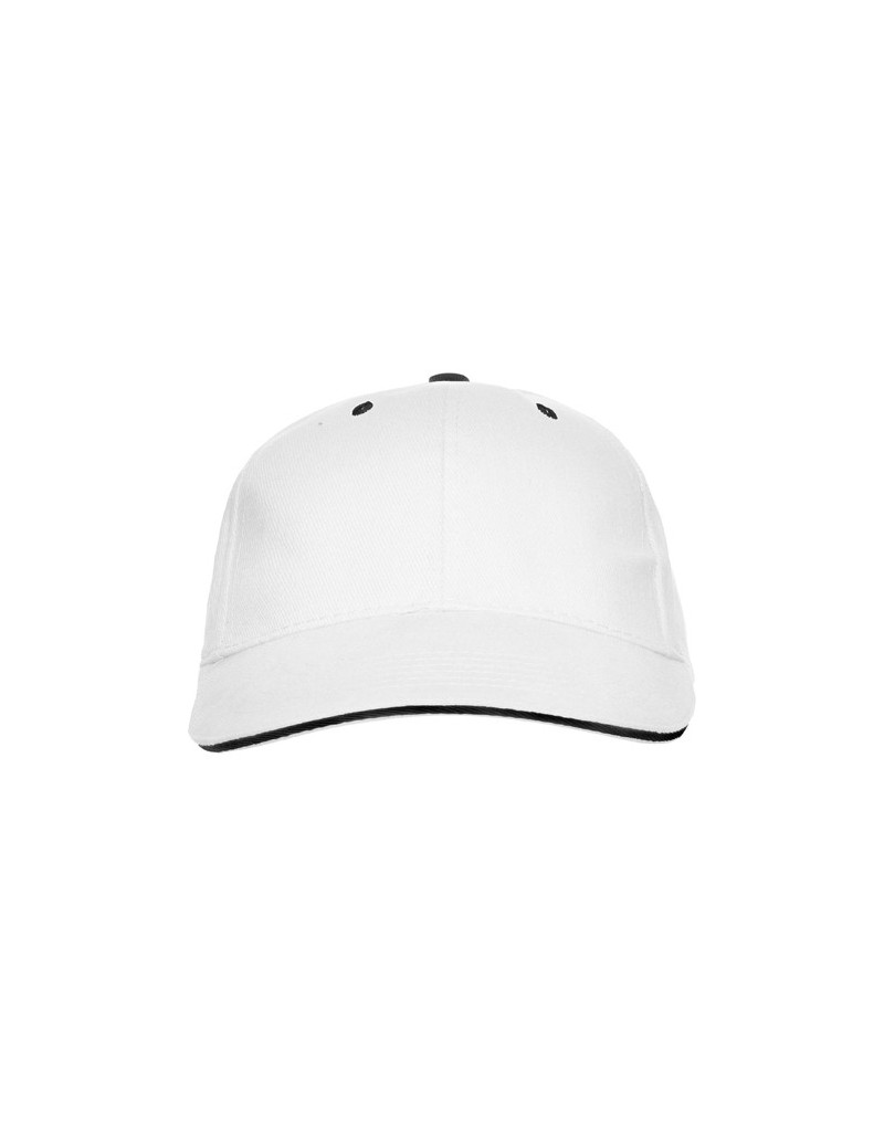 Gorra 6 paneles con sándwich en contraste. 6 agujeros de ventilación bordados a contraste. 6 líneas pespunte en visera. Cinta antisudoral en el interior. Cierre velcro.