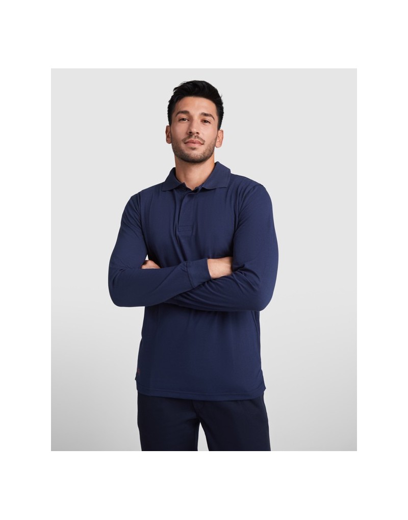 Polo de manga larga en tejido ign¡fugo.ú Cuello y pu¤os en canal‚ 1x1. ú Cubre costuras reforzado en cuello. ú Tapeta con 3 botones ocultos. ú Aperturas laterales en el bajo.