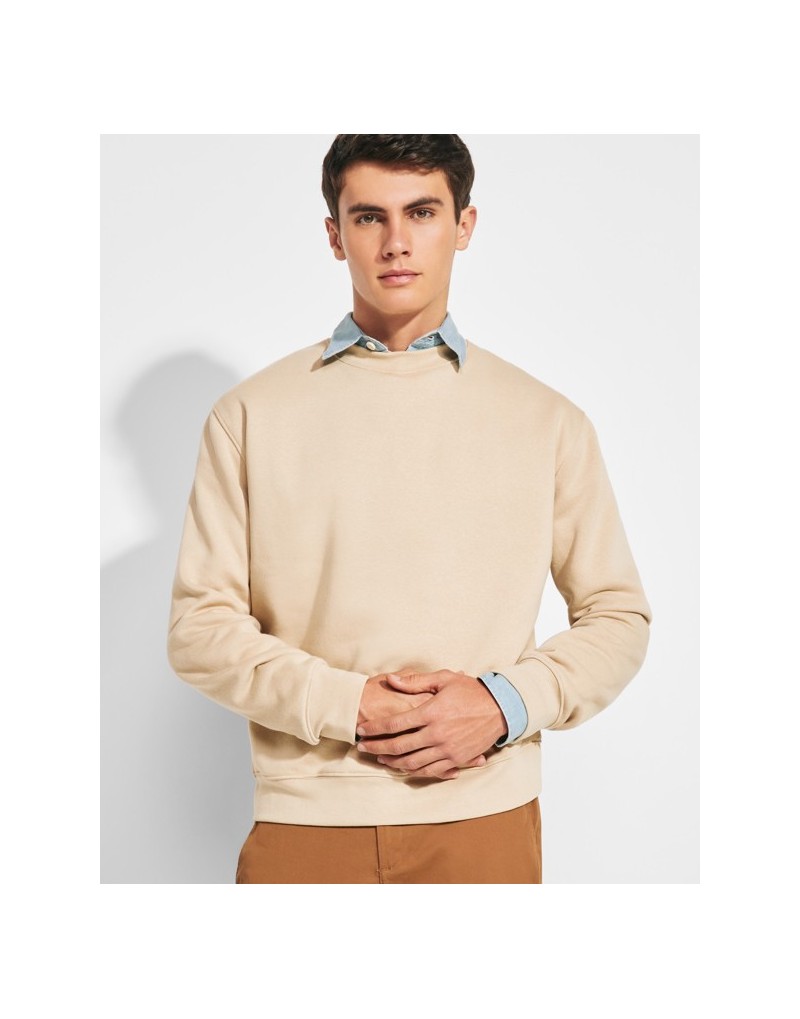 Sudadera en diseño clásico, con cuello, puños y cinturilla de punto canalé 1x1 con elastano. Cubrecosturas reforzado en cuello.