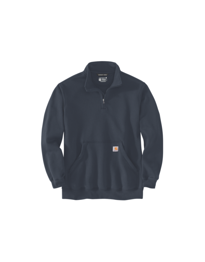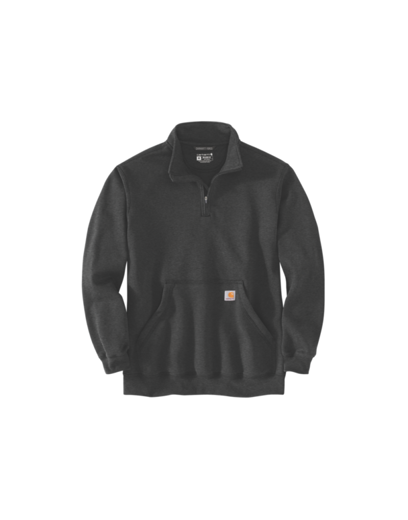 Sudadera Carhartt de ajuste holgado, confeccionada en tejido de peso medio con cremallera de un cuarto y cuello alto tipo mock. Comodidad y estilo para el día a día.